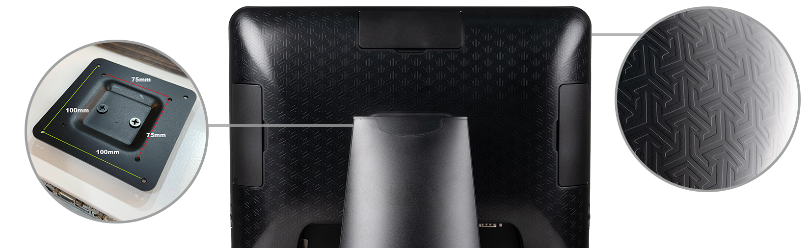 Supports VESA mount with flexible options of 75×75 mm and 100×100 mm to fit different installation needs.